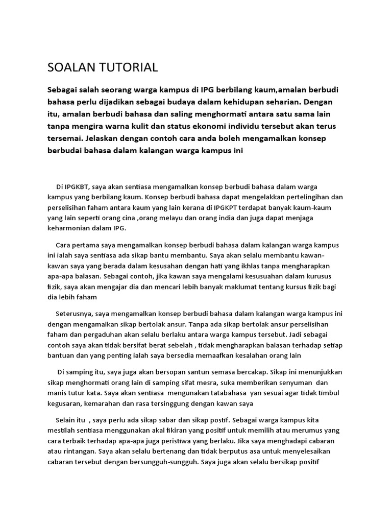 Aku harap dengan jawapan aku kawan - kawan yang kita suka dapat memberi fikiran kedua untuk perkara ini kerana Tuhan Maha Mengetahui setiap apa yang hambaNya lakukan. Seorang kawan yang baik sangat mengenali satu sama lain dan ia dapat mengesan kesusahan dan keperluan kawannya sebelum ia diminta. Negara yang mempunyai berbilang kaum sangat memerlukan usaha-usaha untuk memupuk perpaduan kaum bagi membina negara yang harmoni.