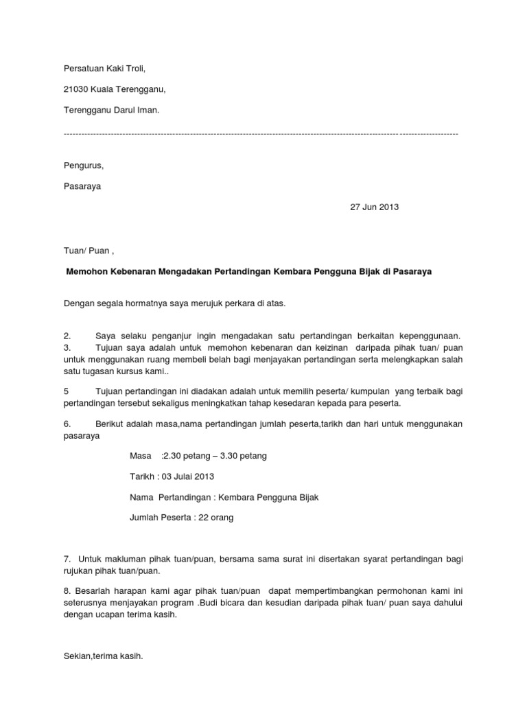 Contoh Surat Rasmi Permohonan Rentas Negeri